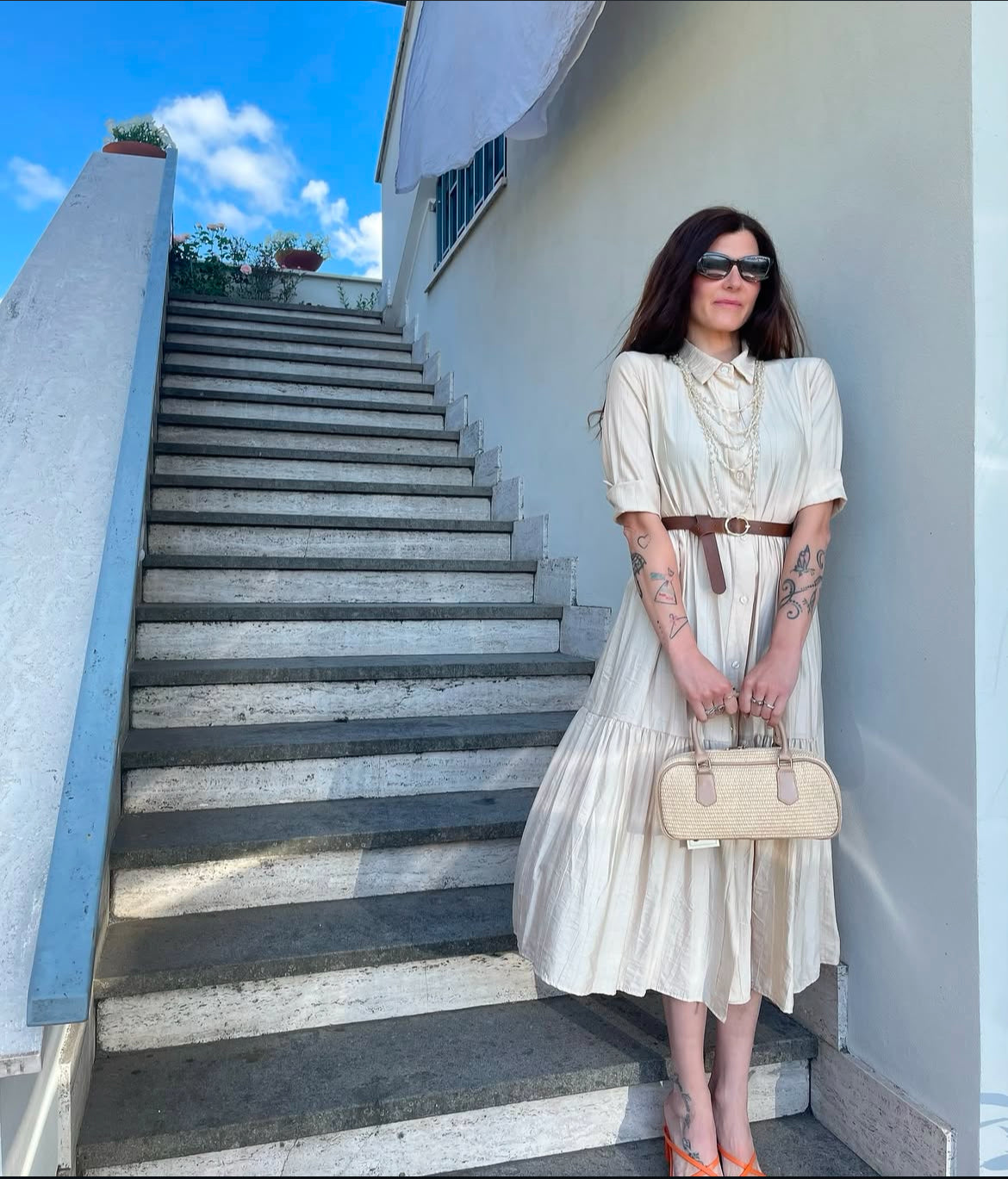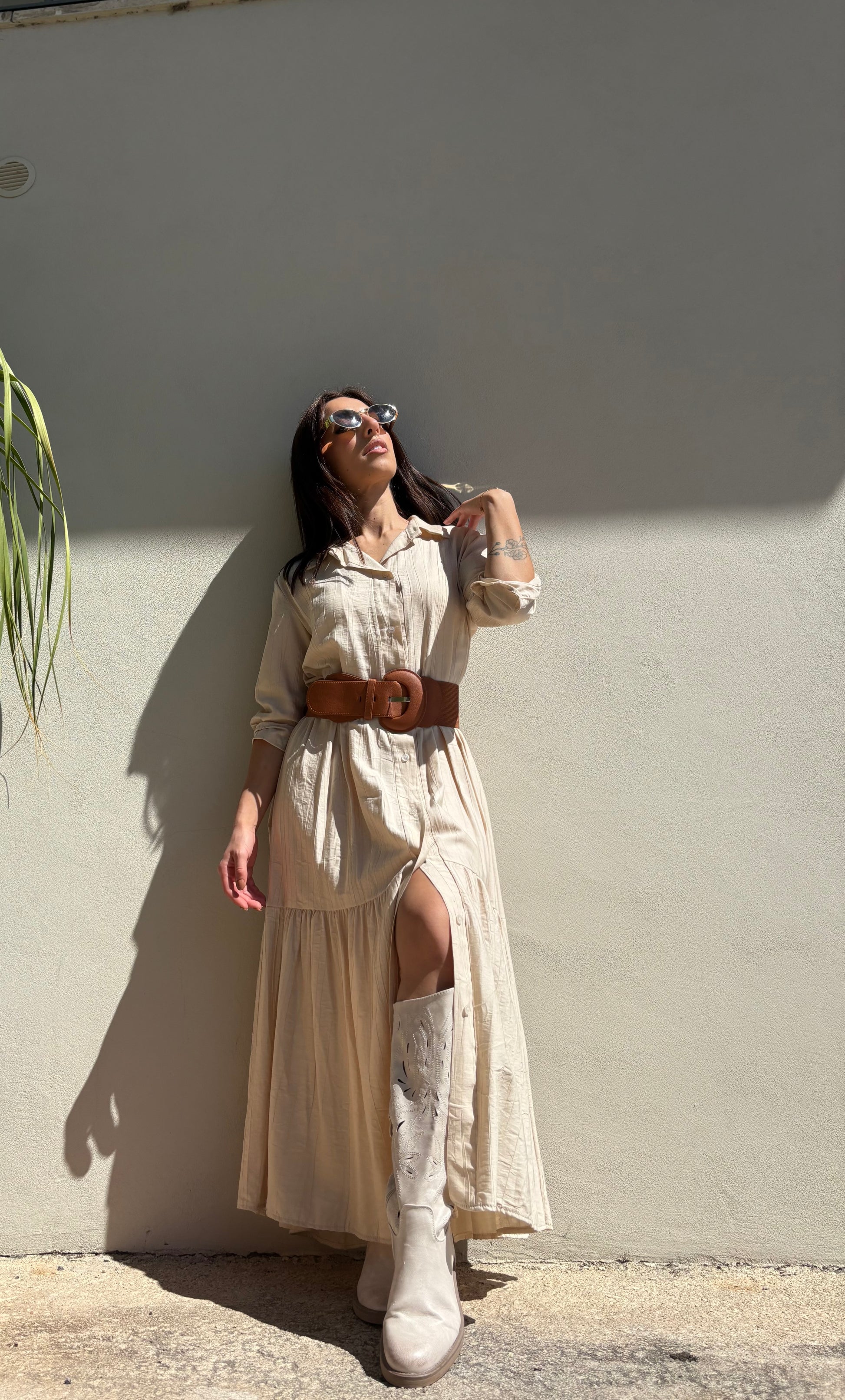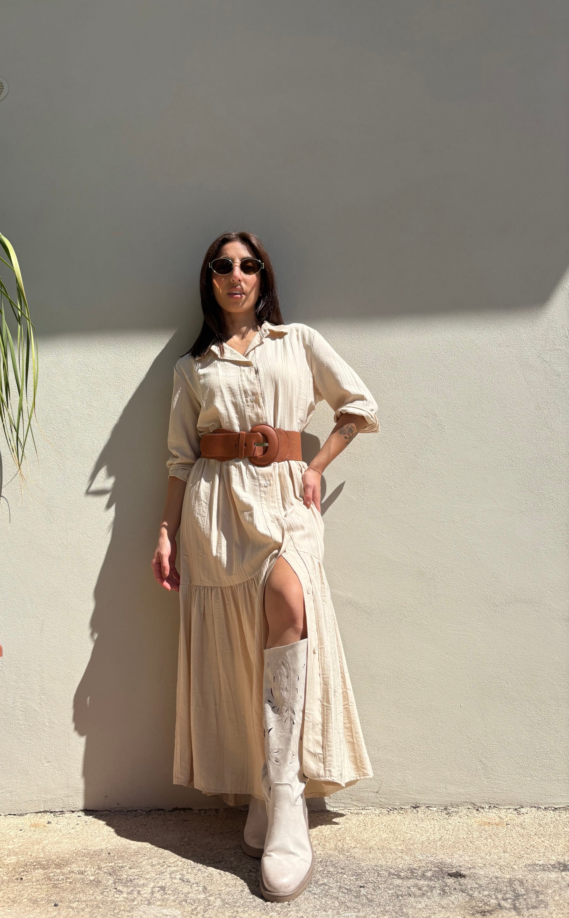 Abito in viscosa e seta, ha i bottoni e può essere utilizzato come camicione. Manica 3/4 morbido.