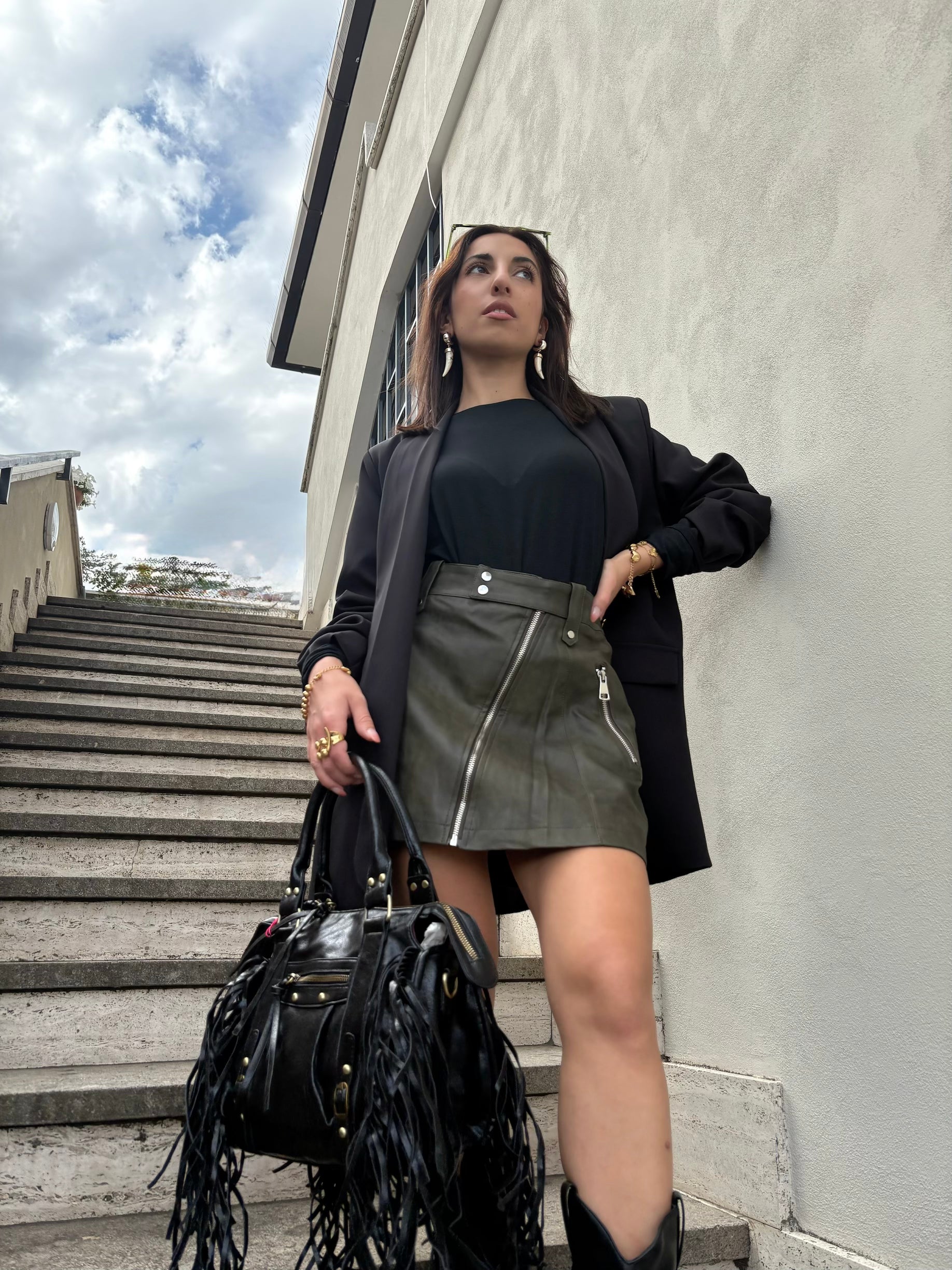 Borsa modello retrò effetto ecopelle con dettagli frange black.
