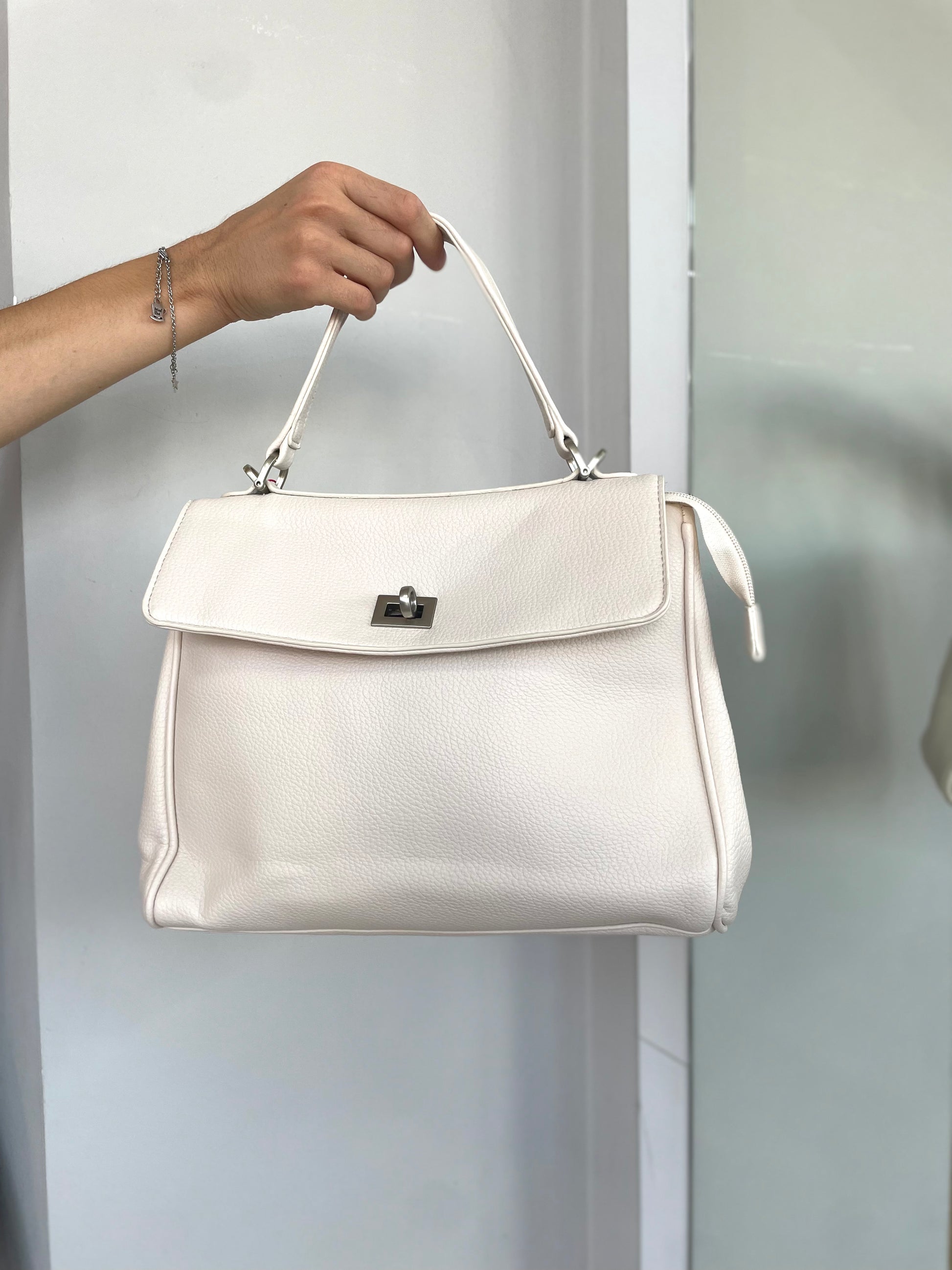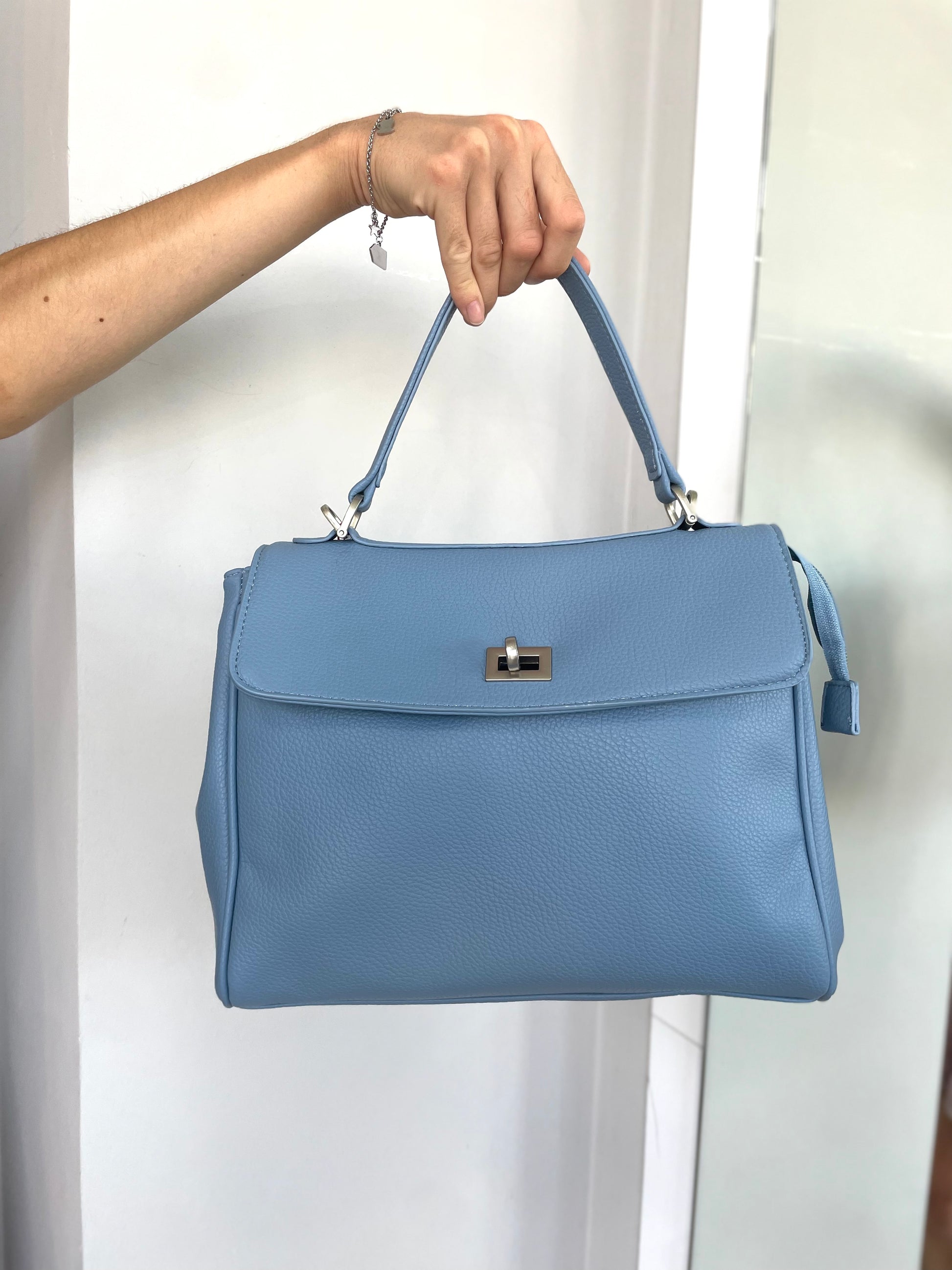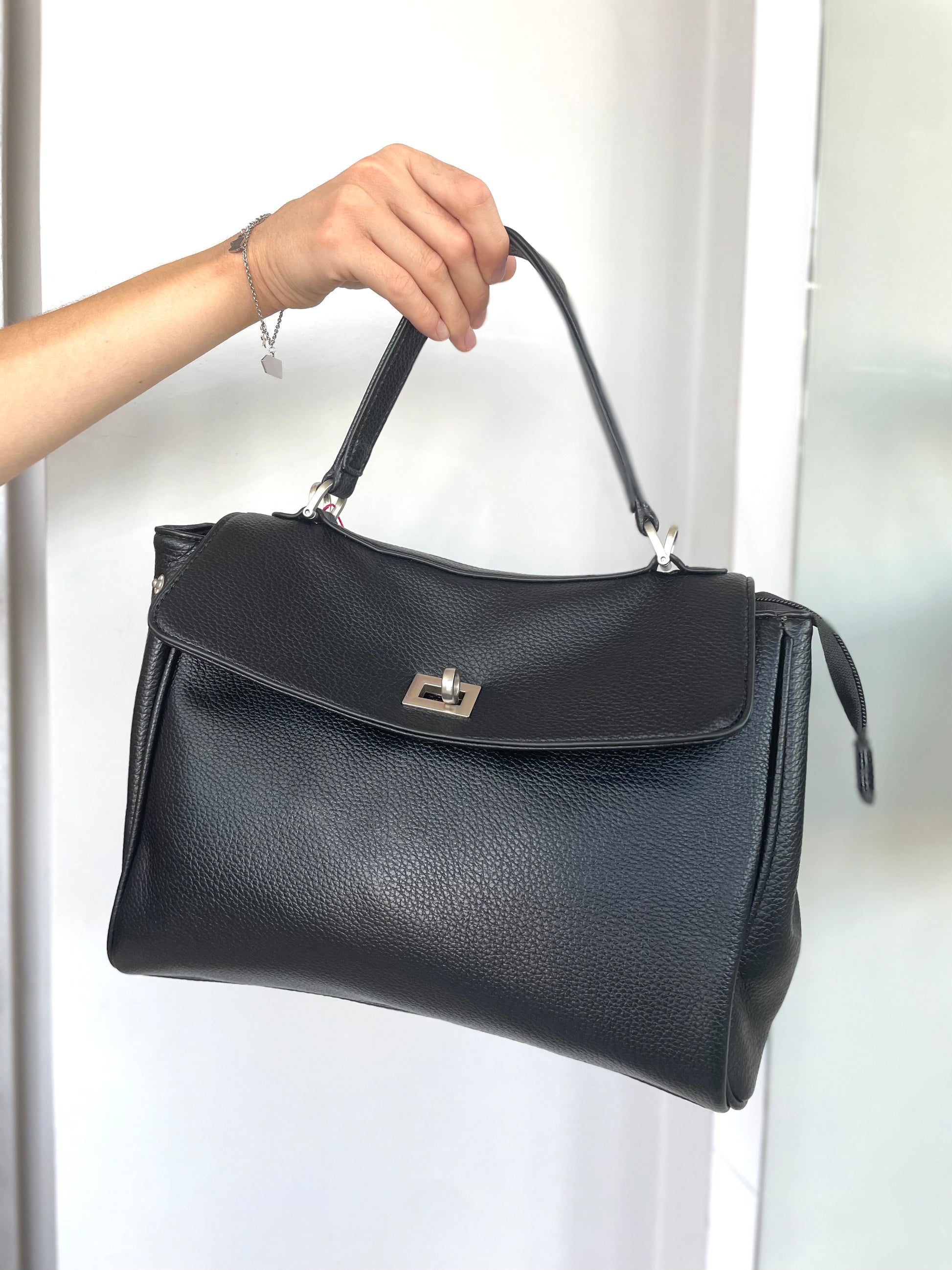 Borsa ecopelle molto capiente, può essere portata per tutti i giorni e all'interno c'è una tracolla. Possiamo trovare dei bottoni nella chiusura laterale