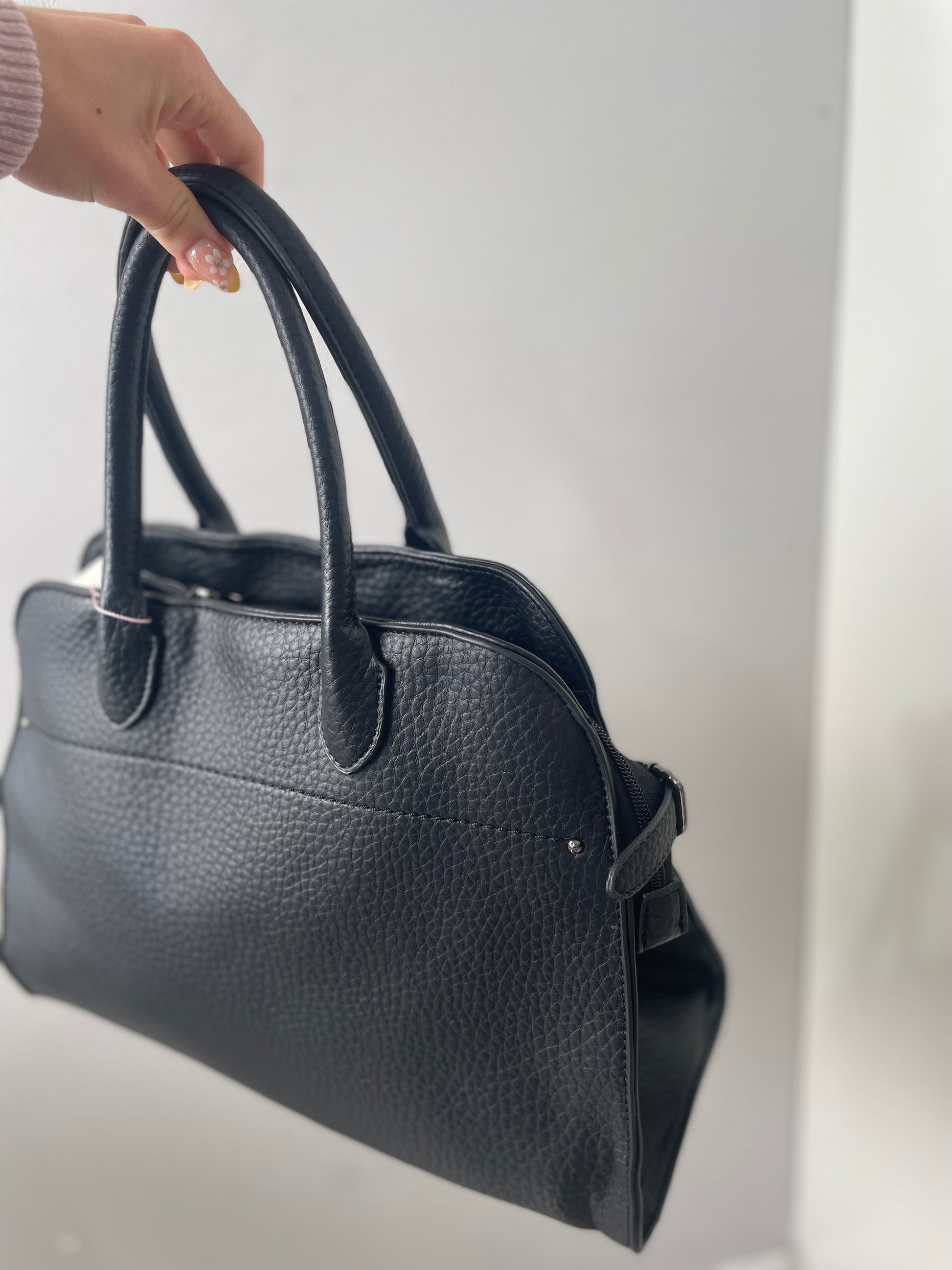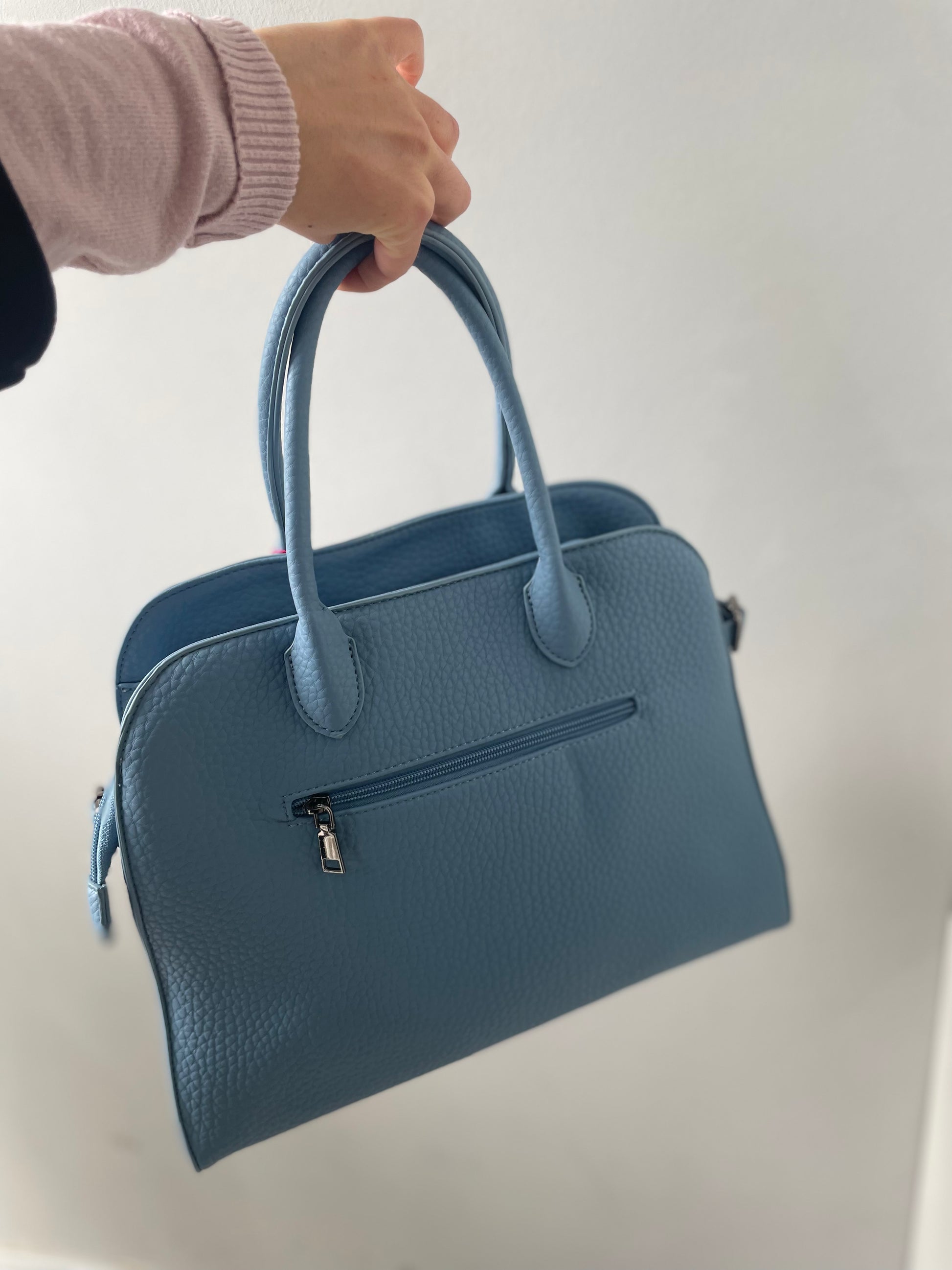 Borsa in ecopelle morbido, all'interno ha più scomparti, nella parte retro della borsa c'è una zip
