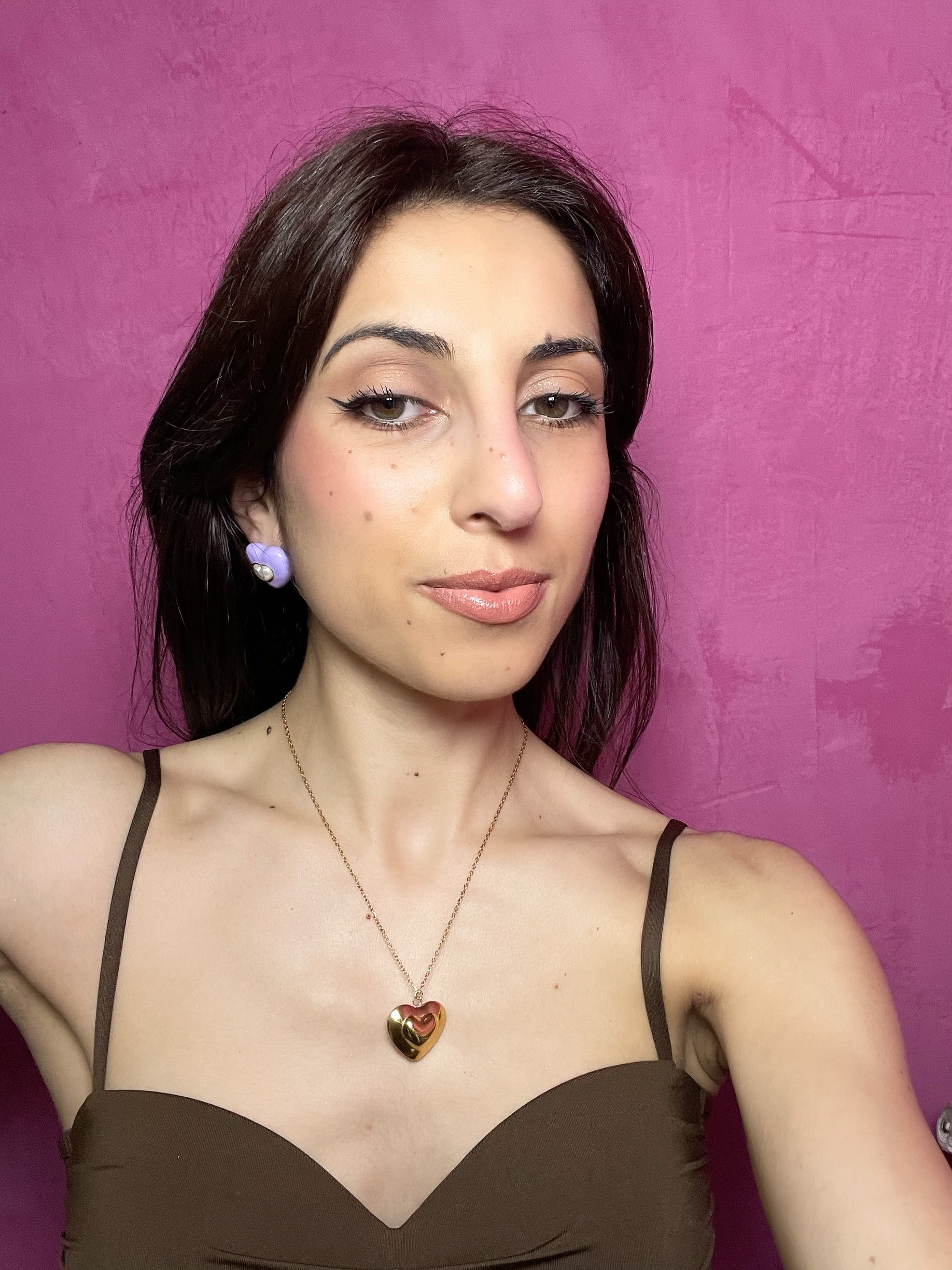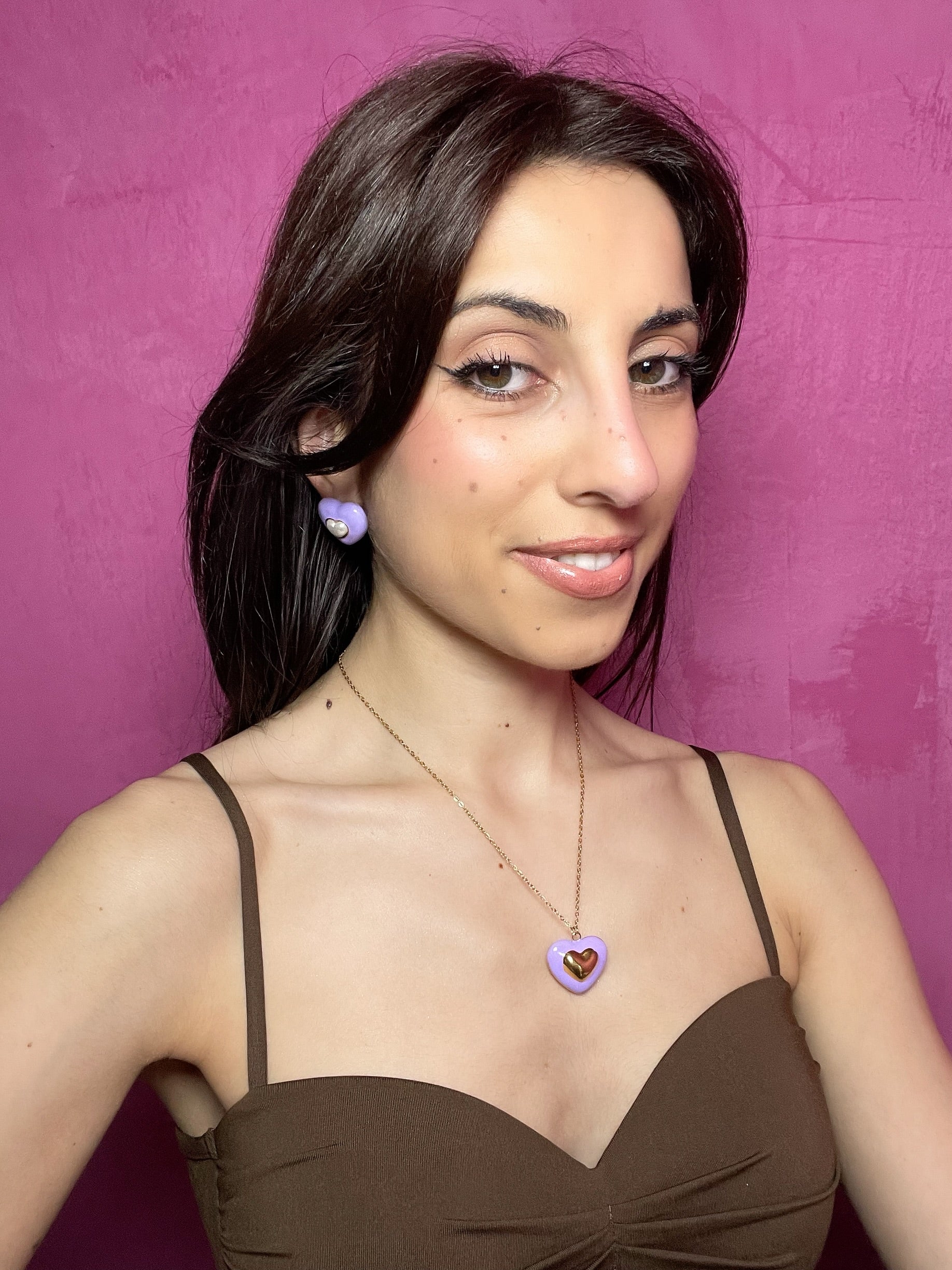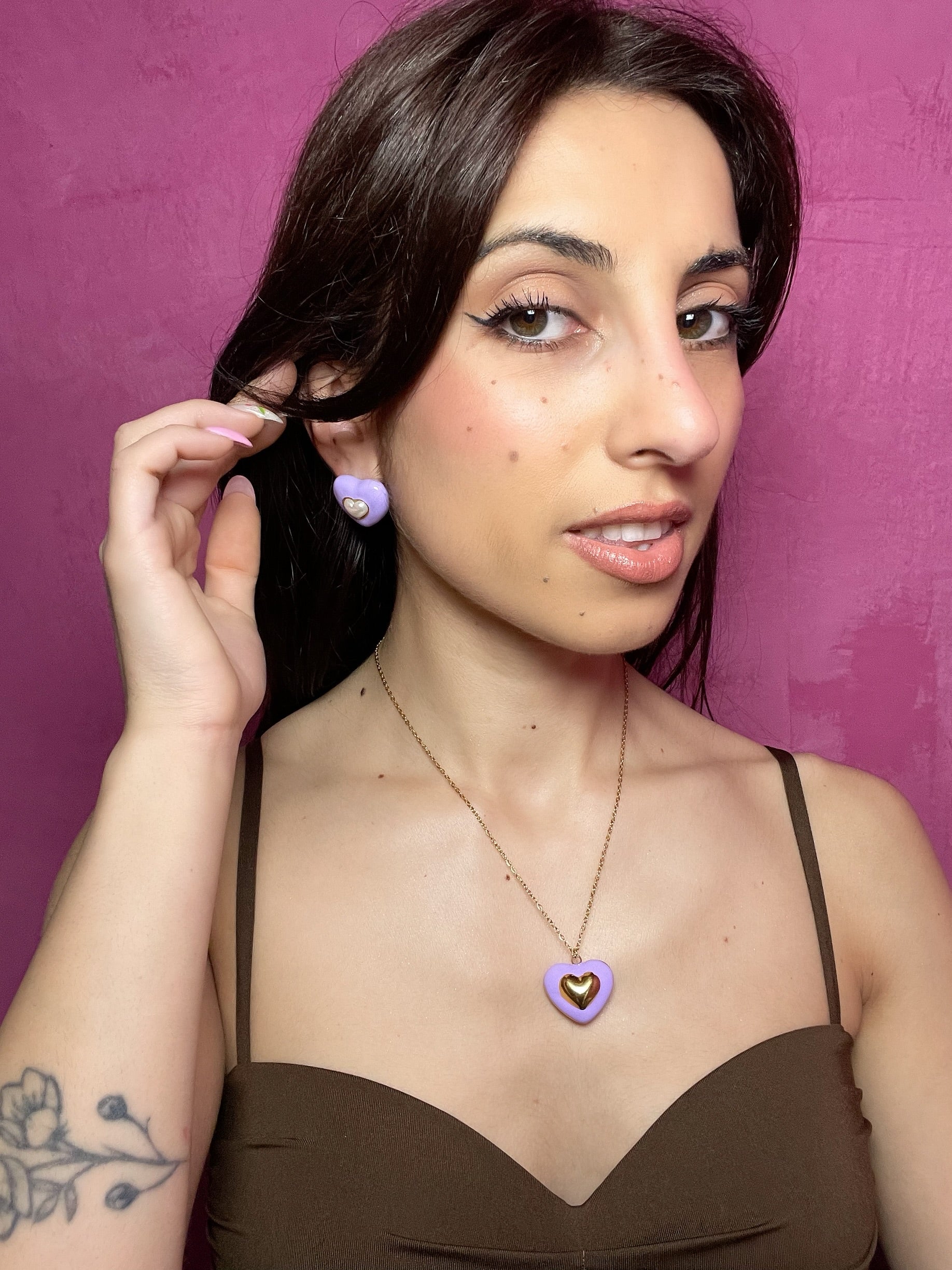 Collana cuore in 3D bombata, può essere indossata nella variante colorata e nella variante oro, perché è double-face.