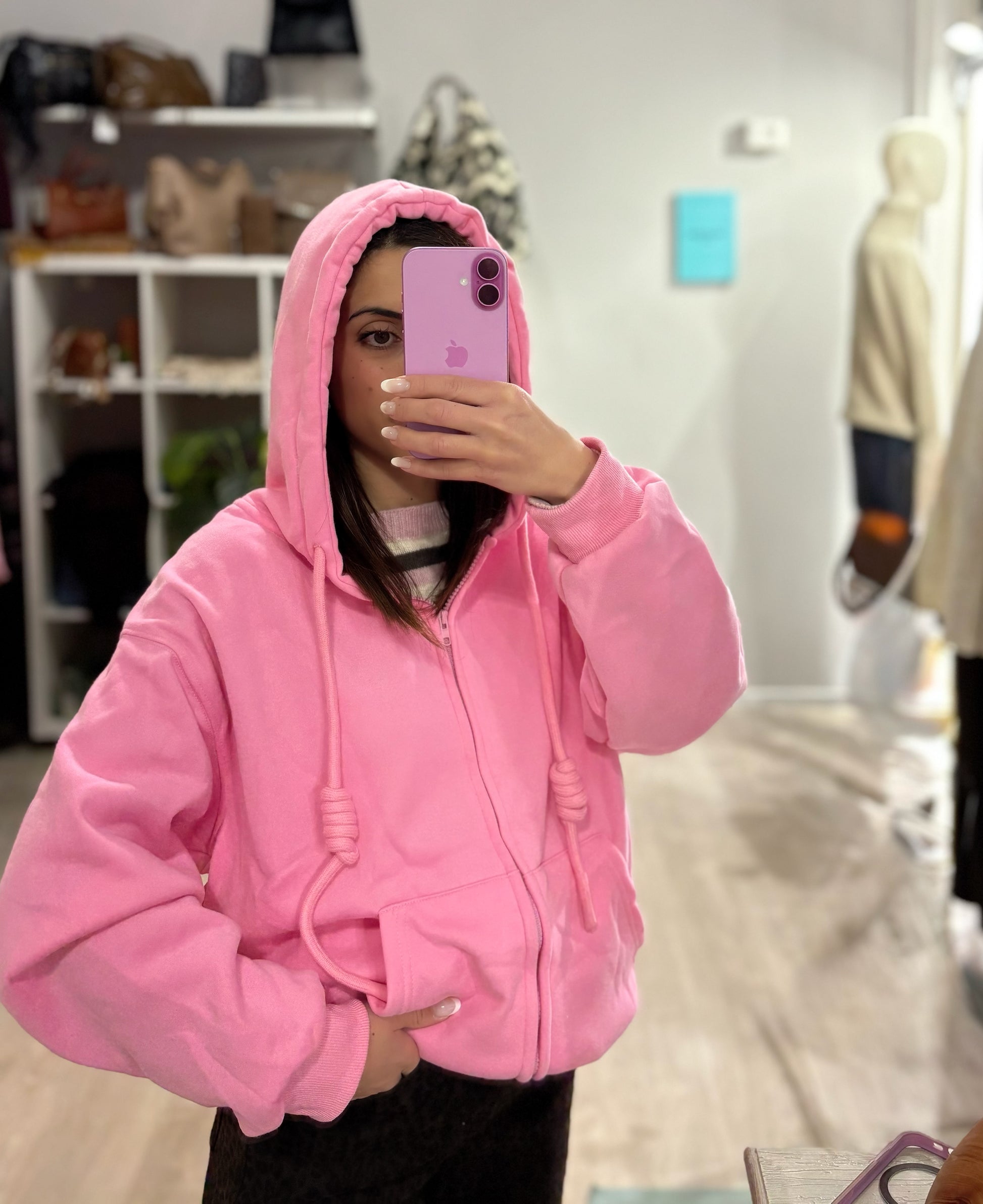 Giacca sportiva modello felpa e con cappuccio e zip! All’interno è felpata