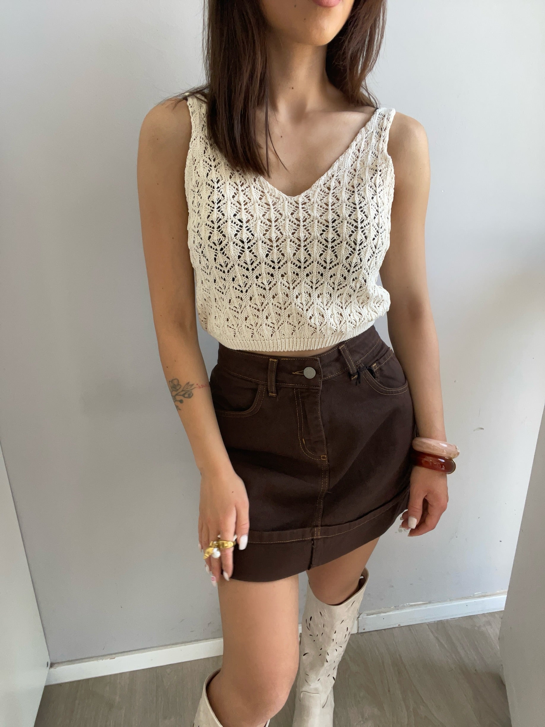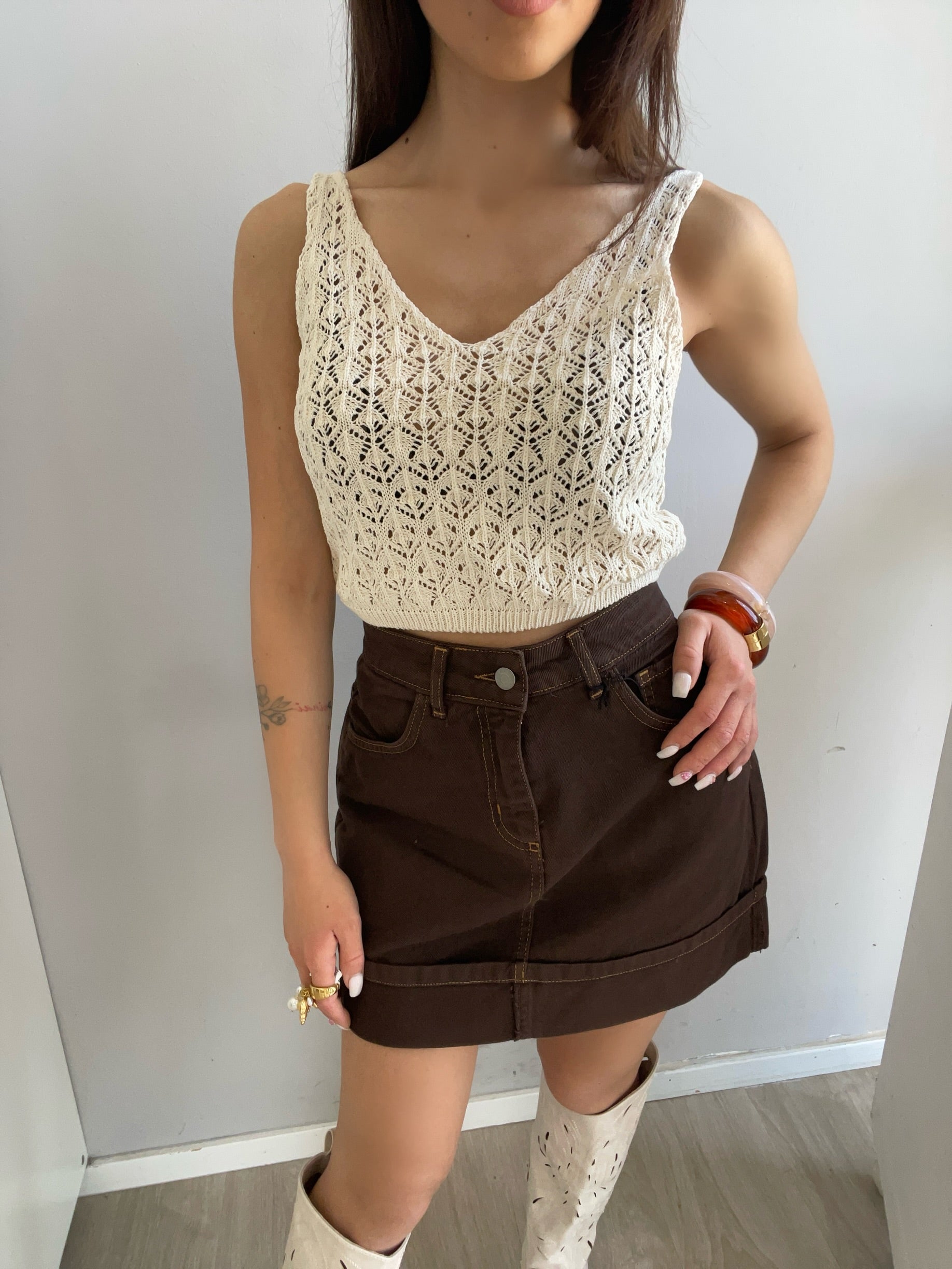 Gonna con risvolto in tessuto jeans. No elasticizzato