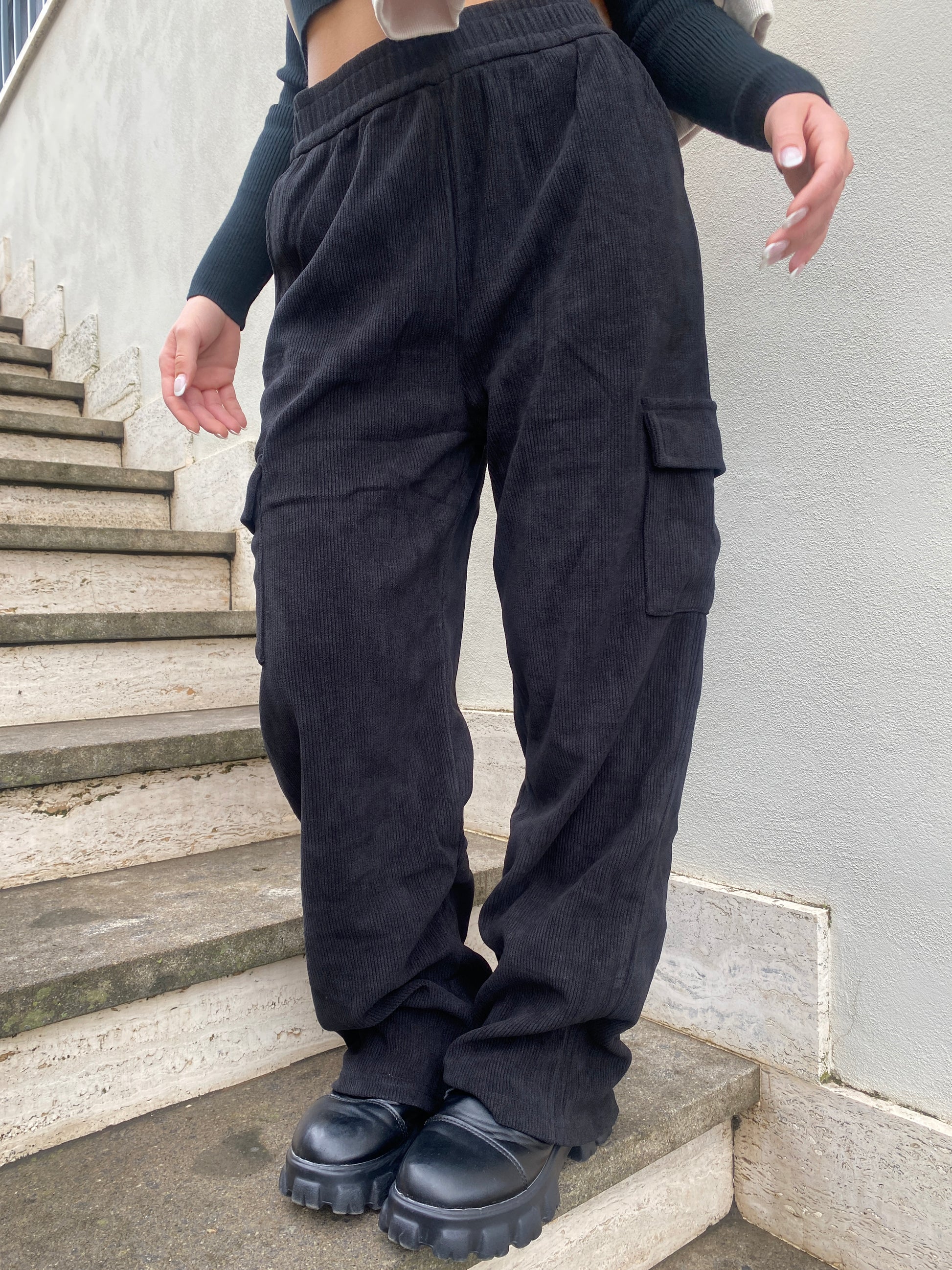 Pantalone cargo scamosciato