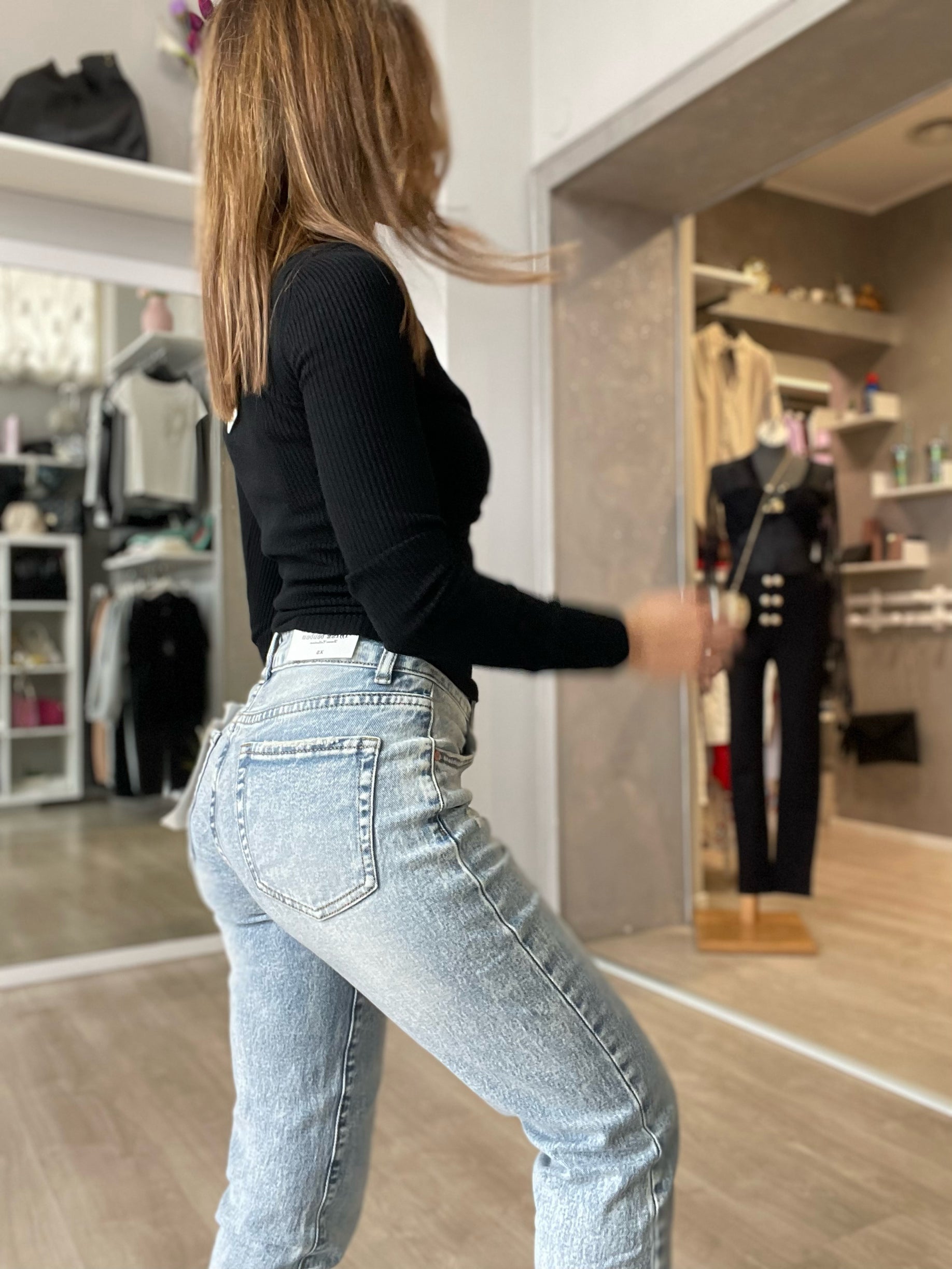Jeans con piccoli graffi, morbido sulla coscia cade dritto sulla caviglia, la vita è normale si consiglia di prendere la taglia che avete.